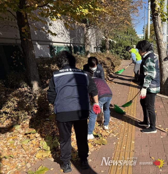 뉴스펀치 김길룡 기자 | 수원시 영통구 매탄4동 행정복지센터는 지난 10일 가을철 낙엽으로 인한 도로 미관 저해 및 안전사고 예방을 위해 가을철 낙엽 쓰레기 대청소를 실시했다.