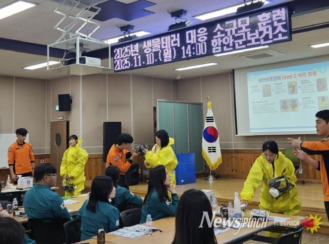 뉴스펀치 김길룡 기자 | 함안군보건소는 지난 10일 오후 2시부터 5시까지 보건소 3층 보건교육장에서 ‘2025년 생물테러 대응 소규모 합동훈련’을 실시했다고 밝혔다.