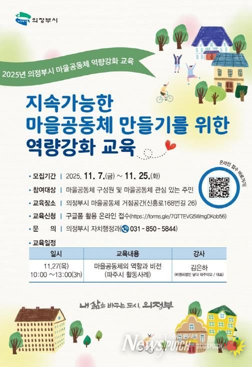 뉴스펀치 김길룡 기자 | 의정부시는 11월 27일 의정부시 마을공동체 거점공간(신흥로168번길 26)에서 ‘마을공동체 역량 강화 교육’을 운영한다.