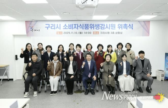 뉴스펀치 김길룡 기자 | 구리시는 지난 10일 시청 3층 상황실에서 ‘2025년 소비자 식품위생감시원 위촉식’을 열고 17명의 감시원에게 위촉장을 수여했다.