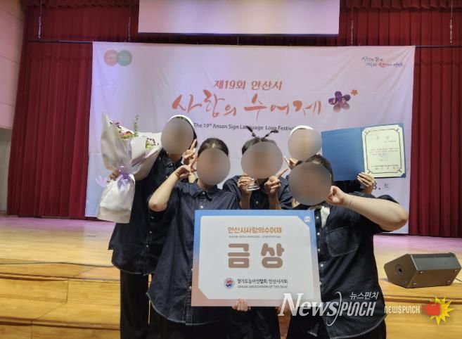 뉴스펀치 김길룡 기자 | 의왕시청소년재단 산하 의왕시학교밖청소년지원센터의 수어 동아리 ‘수어노바’가 11월 8일 안산시수어통역센터에서 주최한 제19회 안산시사랑의수어제에서 금상을 수상했다.