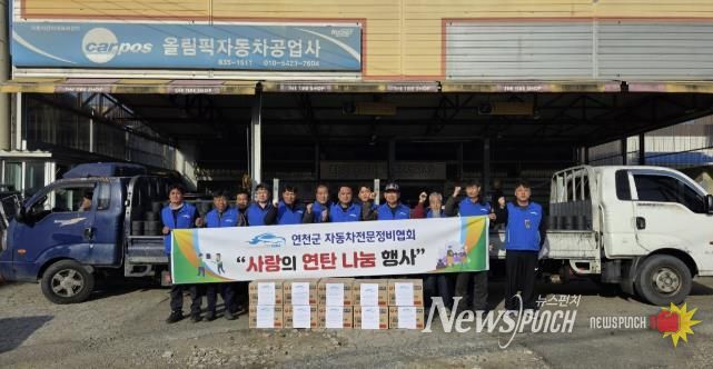 뉴스펀치 김길룡 기자 | 연천군자동차전문정비협회는 지난 9일 관내 소외계층 지원을 위한 ‘사랑의 연탄나눔행사’에 회원 13명이 참여해 연탄 2,000장과 라면 10박스 등 200만 원 상당의 후원물품을 전달했다고 밝혔다.