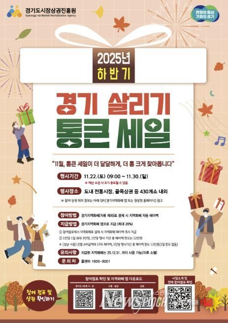 통큰 세일 행사는 예산이 소진될 경우 조기 종료될 수 있다. 지급된 지역화폐는 올해 12월 31일까지 사용할 수 있으며, 이후에는 자동 소멸된다. 사업 관련 문의는 콜센터로 하면 된다. 행사 내용과 참여 상권 정보는 ‘경기지역화폐’ 앱 또는 경기도시장상권진흥원 홈페이지에서 확인할 수 있다.