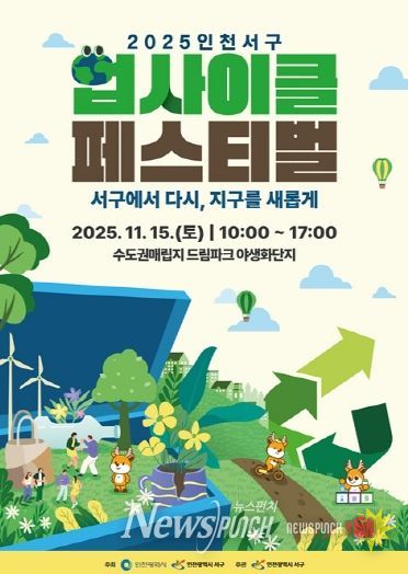 뉴스펀치 김길룡 기자 | 인천 서구는 오는 11월 15일 오전 10시부터 인천 서구 수도권매립지 내 드림파크 야생화단지에서 ‘2025 인천서구 업사이클 페스티벌’를 개최한다고 밝혔다.