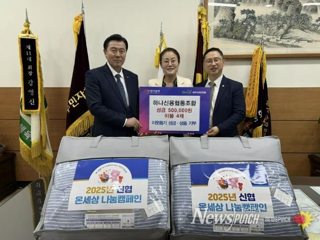 김중열 하나신협 이사장은 “추운 겨울, 어려운 이웃들에게 따뜻한 온기를 전하고자 이번 기부에 동참했다”며 “비록 작은 정성이지만 지역사회에 따뜻한 마음이 전달되길 바라며, 앞으로도 꾸준한 나눔을 통해 따뜻한 지역사회 조성에 기여하겠다”고 말했다.