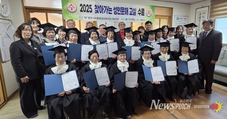 뉴스펀치 김길룡 기자 | 영천시 평생학습관은 10일 고경면 상리리 경로당을 시작으로 ‘2025년 성인문해교육 프로그램 지원사업’의 여정을 마무리하는 수료식을 개최했다.