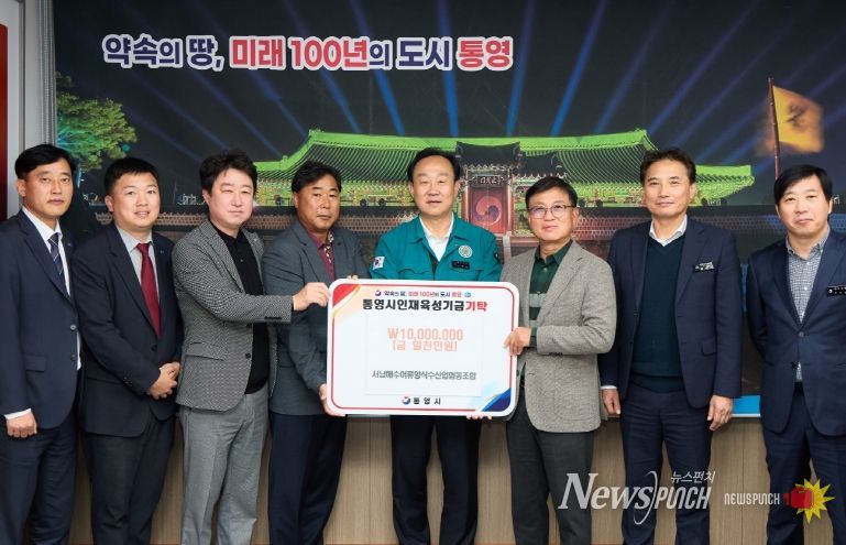 뉴스펀치 김길룡 기자 | 서남해수어류양식수협(조합장 김성훈)은 지난 10일 통영시(시장 천영기)를 방문해 인재육성기금 1000만원을 기탁했다.