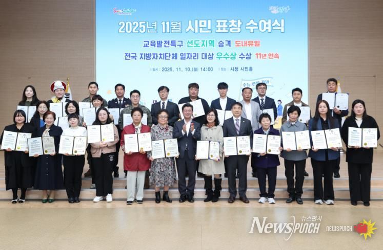 뉴스펀치 김길룡 기자 | 광양시는 11월 10일 시청 시민홀에서 11월 시정발전 유공 시민 표창 수여식을 진행했다고 밝혔다.