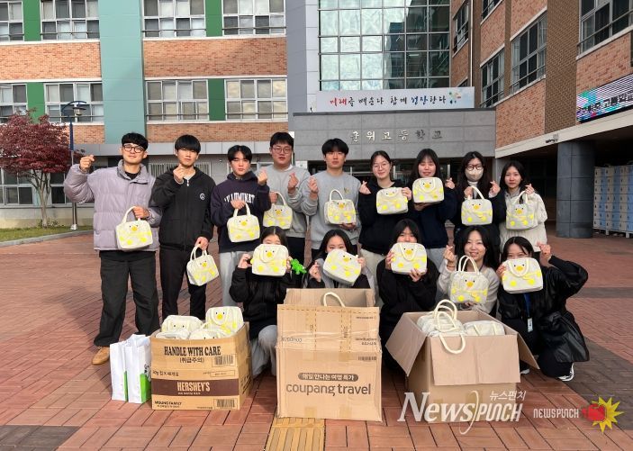 뉴스펀치 김길룡 기자 | 11월 11일, 군위군청소년수련원(원장 박동찬)은 2026학년도 대학수학능력시험을 치르는 수험생들을 격려하고 응원하기 위해 지역 내 군위고등학교(교장 이현정)를 방문했다. 특별히 이번 방문은 군위군청소년수련원 청소년운영위원회 '세 잎 클로버'가 함께 준비한 ‘응원 물품 꾸러미’를 전달해 그 의미를 더했다.