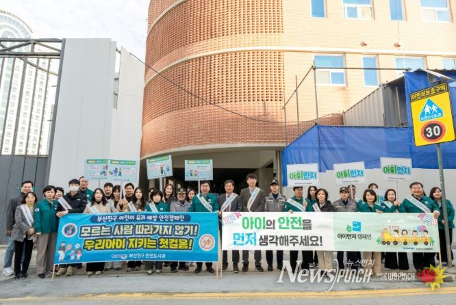 뉴스펀치 김길룡 기자 | 부산진구는 11월 11일 오전 전포초등학교 정문에서 어린이 안전을 위한'어린이 약취․유인 예방 안전 캠페인'을 실시했다.