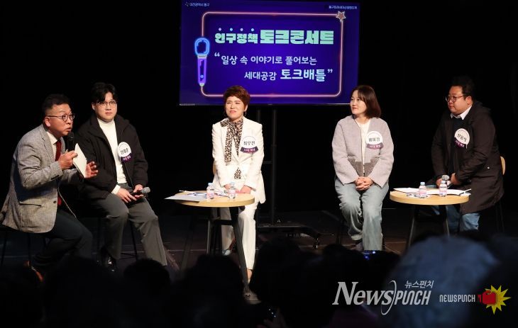 이날 프로그램은 유쾌한 남자 김범식 MC의 ‘펀펀토크’로 시작해 ▲공감토크 ‘YES or NO 청장의 선택’ ▲인구정책 숏폼·영상 공모전 수상작 상영 ▲세대간 토크배틀 ▲인구정책 OX 퀴즈 등 다채로운 프로그램으로 진행됐다.