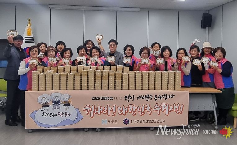 뉴스펀치 김길룡 기자 | 한국생활개선함안군연합회(회장 조인숙)는 지난 11일 함안군 관내 5개 고등학교 수험생 455명에게 합격을 기원하는 ‘수능대박 찹쌀떡’을 전달했다고 밝혔다.