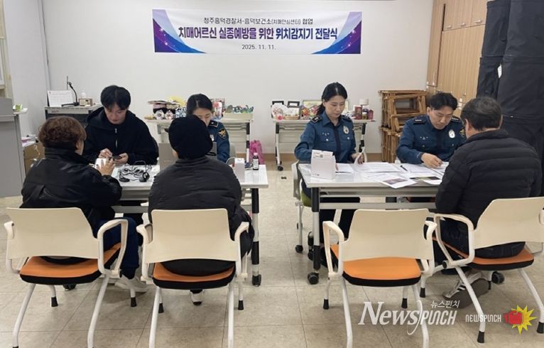 뉴스펀치 김길룡 기자 | 청주시 흥덕보건소는 11일 청주흥덕경찰서와 함께 지역 내 치매 어르신과 보호자에게 ‘치매안심, 스마트태그 위치감지기’를 전달했다.