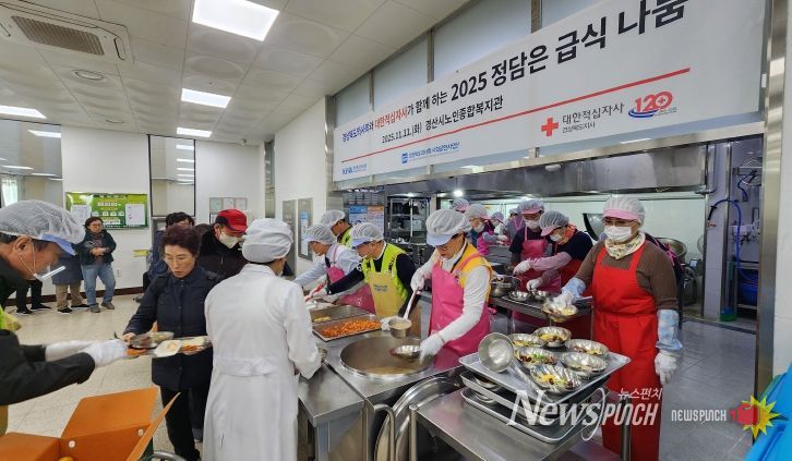 뉴스펀치 김길룡 기자 | 경상북도의사회 및 (사)경상북도의사회 사회공헌사업단(회장 겸 대표이사 이길호)은 11일 경산시노인종합복지관에서 지역 어르신 등 취약계층을 대상으로“2025 정담은 급식 나눔”행사를 개최했다.