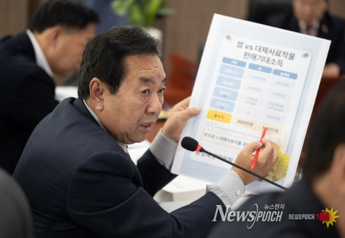 뉴스펀치 김길룡 기자 | 경기도의회 김성남 의원(국민의힘, 포천2)은 10일 진행된 농수산생명과학국 행정사무감사에서 정부의 가루쌀(분질미) 재배면적 감축 검토에 대해 우려를 표하며, 농가 혼란 최소화 위한 도 차원의 대응 시급하다고 강조했다.