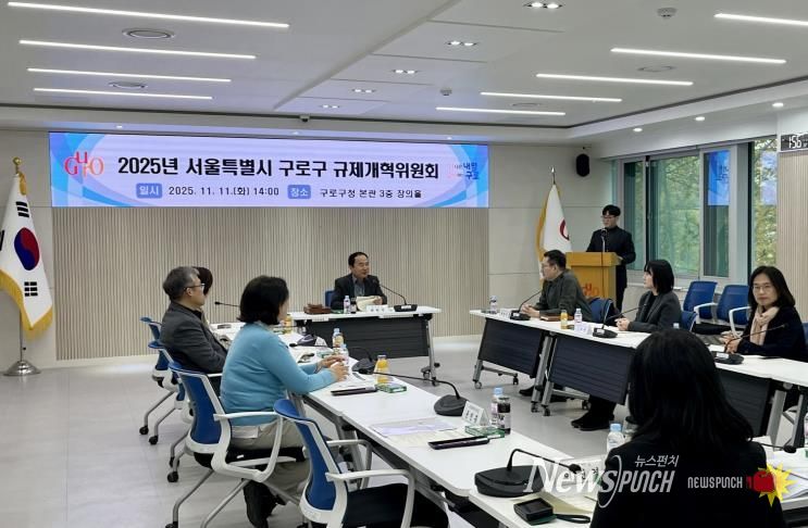 뉴스펀치 김완규 기자 | 구로구가 11월 11일 구청 본관 3층 창의홀에서 ‘2025년 구로구 규제개혁위원회’ 회의를 열고, 민간 전문가와 협력해 불합리한 자치법규 개선에 나섰다.