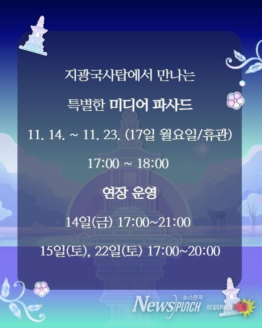 뉴스펀치 김길룡 기자 | 원주시역사박물관은 오는 14일부터 23일까지 법천사지 유적전시관에서 법천사지 지광국사탑 미디어파사드 전시를 개최한다.