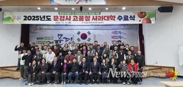 뉴스펀치 김길룡 기자 | 문경시농업기술센터는 11월 11일 농업기술센터 대강당에서 2025년도 문경시 고품질 사과대학 수료식을 열고, 전체 교육 시간의 80% 이상을 출석한 교육생 123명 중 87명이 수료의 영예를 안았다.