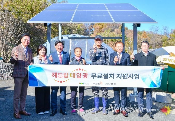 뉴스펀치 김길룡 기자 | 부강이엔에스(주)(대표 박규식)가 「횡성군 취약계층 태양광 발전설비 무료 설치 지원사업 업무협약」을 통해 2025년 주거 취약계층 3가구를 대상으로 태양광 발전설비 및 전기 연결 서비스 무상 지원했다고 밝혔다.