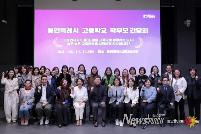 뉴스펀치 김길룡 기자 | 이상일 용인특례시장은 11일 기흥구 동백동에 있는 미디어센터에서 23개 고등학교 학부모 대표 50명과 학교별 교육 현안과 건의사항을 청취하고 지원 방안을 논의했다.
