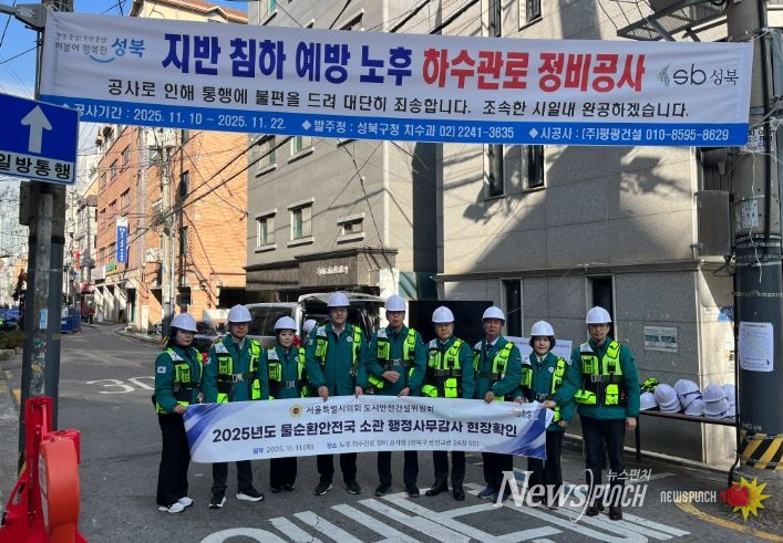 뉴스펀치 김완규 기자 | 서울특별시의회 도시안전건설위원회는 11월 11일 제333회 정례회 중 물순환안전국 소관 행정사무감사의 일환으로 성북구 삼선교로24길 55 일대 노후 하수관로 정비사업 현장을 방문하여 사업추진 현황과 지반침하 예방대책을 점검했다.