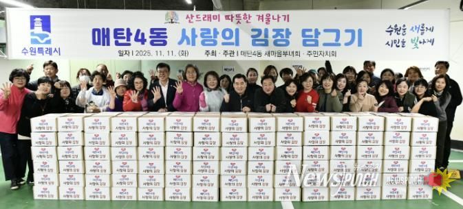 뉴스펀치 김길룡 기자 | 수원시 영통구 매탄4동 새마을부녀회는 11월 11일,‘2025 사랑의 김장나눔' 행사를 개최했다.