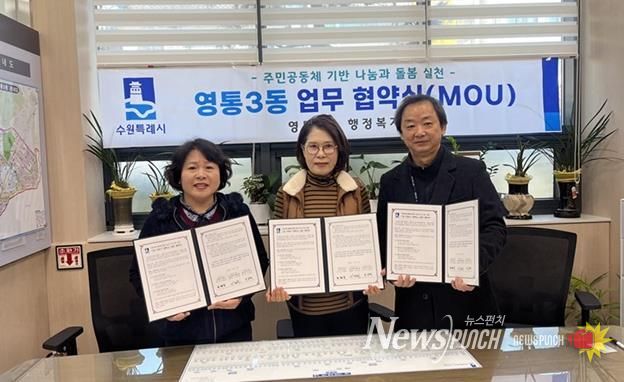 뉴스펀치 김길룡 기자 | 수원시 영통3동 지역사회보장협의체는 11월 11일, 영통3동 행정복지센터에서 ‘꿈 더하기 장학금’ 협력사업 협약식을 열고, 저소득 가구 자녀를 대상으로 정기적인 장학금 지원을 위한 민·관 협력 체계를 구축했다.