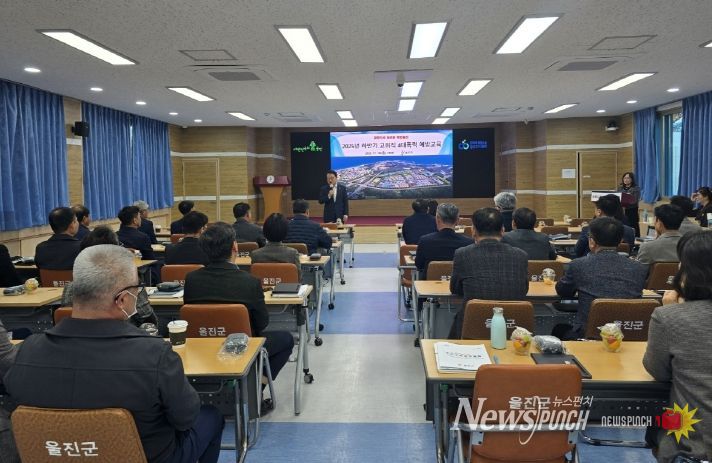 뉴스펀치 김길룡 기자 | 울진군은 지난 11월 10일 군청 대회의실에서 손병복 군수를 포함한 5급 이상 고위직 45명을 대상으로 성매매‧가정폭력 등 4대 폭력 예방교육을 실시했다.