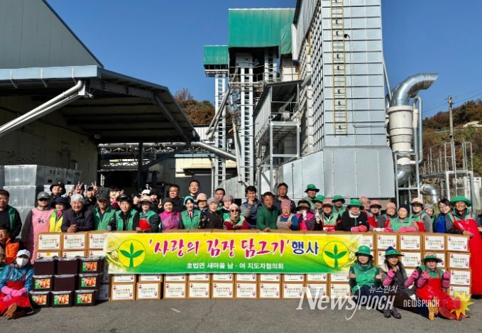 뉴스펀치 김길룡 기자 | 이천시 호법면은 지난 11월 11일 호법농협 미곡처리장에서 ‘사랑의 김장 나눔’ 행사를 열고 지역의 어려운 이웃들에게 따뜻한 손길을 전했다. 이번 행사는 호법면 새마을남녀협의회와 호법면 지역사회보장협의체, 호법농협 및 관계 공무원 등이 참여했다.