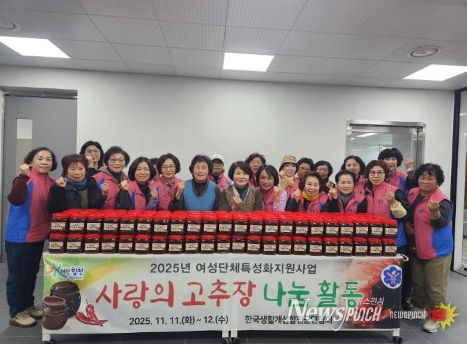 뉴스펀치 김길룡 기자 | (사)한국생활개선합천군연합회는 11일과 12일, 이틀 동안 이정임여성단체협의회장, 정순옥 정심회장, 회원 20여 명이 참여한 가운데 농업기술 센터 디미원(조리실습실)에서 고추장 나눔 활동을 실시했다.