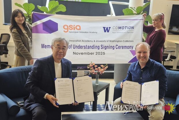 뉴스펀치 김길룡 기자 | (재)경산이노베이션아카데미는 미국 시애틀에 위치한 워싱턴대학교(University of Washington)의 혁신·창업 허브 기관 CoMotion(코모션)과 소프트웨어 인재 양성 및 글로벌 혁신 생태계 조성을 위한 업무협약(MOU)을 10일 체결했다고 밝혔다.
