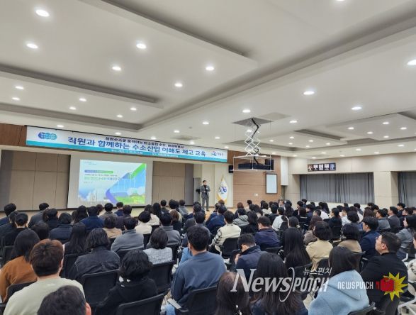 뉴스펀치 김길룡 기자 | 영광군은 11월 12일 수요일 군청 3층 대회의실에서 150여 명의 직원들이 참석한 가운데 미래먹거리산업으로 전략적 육성 중인 청정수소산업의 추진 방향 및 수소특화단지 조성에 대한 현황 등 관련 교육을 실시했다.