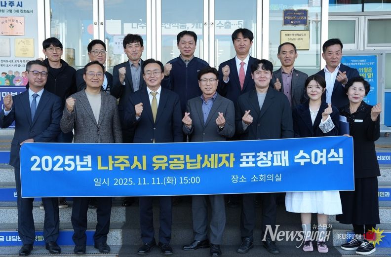 뉴스펀치 김길룡 기자 | 전라남도 나주시가 성실한 납세 문화를 확산하고 지역 재정의 자립 기반을 강화하기 위해 유공납세자를 선정해 감사의 뜻을 표했다.