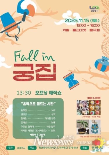 시 관계자는 “‘Fall in 궁집’은 남양주시 청년들의 재능과 지역 문화가 만나 새로운 가치를 창출하는 자리”라며 “앞으로도 청년 인재 발굴과 지역 문화 확산을 위해 다양한 프로그램을 지속적으로 운영하겠다”고 밝혔다.