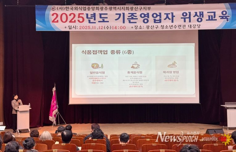 뉴스펀치 김길룡 기자 | 광주 광산구는 12일 광산구청소년수련관에서 지역 일반음식점 기존영업자를 대상으로 ‘2025년도 기존영업자 집합 위생교육’이 진행됐다고 밝혔다.
