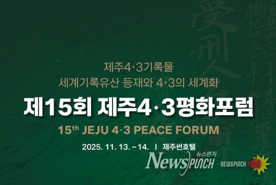 제주4·3평화재단은 11월 13일부터 14일까지 제주 썬호텔에서 '제주4・3 기록물 세계기록유산 등재와 4・3의 세계화'를 주제로 ‘제15회 제주4・3평화포럼’을 개최한다고 밝혔다.