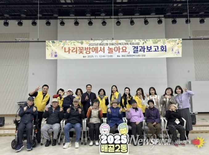 뉴스펀치 김길룡 기자 | 배곧2동 지역사회보장협의체는 지난 11월 12일 ‘나리꽃방에서 놀아요’ 결과보고회를 개최하며 1년간의 활동을 마무리했다. 이번 행사는 사업에 참여한 어르신과 협의체 위원들이 함께 모여 그동안의 성과를 공유하고 서로에게 감사의 마음을 전하는 자리로 마련됐다.