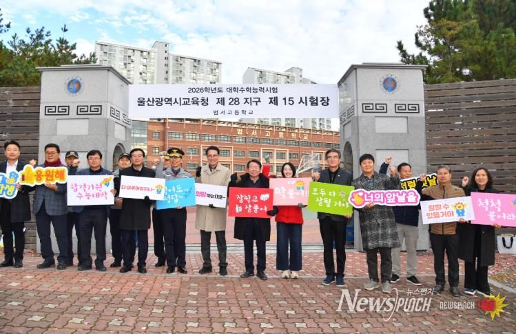 뉴스펀치 김길룡 기자 | 울산 울주군이 13일 2026학년도 대학수학능력시험을 맞아 관내 시험장인 범서고등학교를 찾아 수험생들에게 응원과 격려를 전했다.