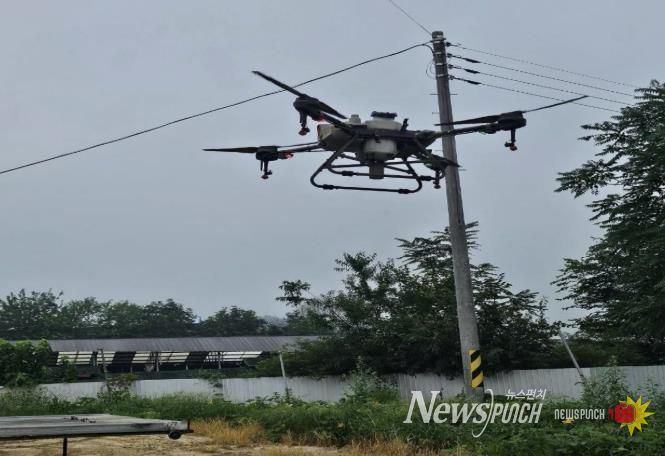 가을 수확기 야생멧돼지 농장 침입 위험이 높아짐에 따라 군은 민·관 협력 방식으로 드론을 투입해 농장 주변에 기피제를 집중 살포했으며, 접근이 어려운 임야 지역까지 방제 범위를 확대해 차단 효과를 극대화했다.