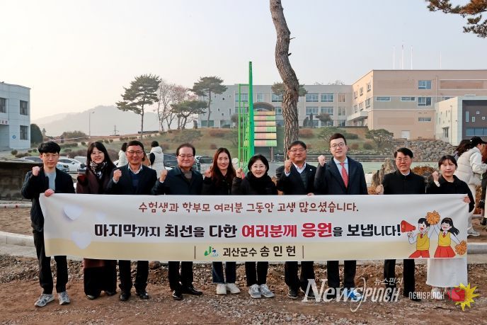 뉴스펀치 김길룡 기자 | 충북 괴산군이 13일 2026학년도 대학수학능력시험일을 맞아 괴산고등학교를 찾아 수험생들을 격려했다.
