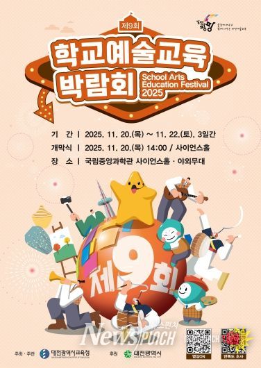 뉴스펀치 김길룡 기자 | 대전시교육청은 11월 20일부터 22일까지 '2025 제9회 학교예술교육박람회'를 국립중앙과학관에서 개최한다고 밝혔다.