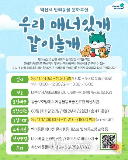 뉴스펀치 정홍균 기자 | 익산시가 올바른 반려동물 문화 확산을 위한 교육의 장을 연다.