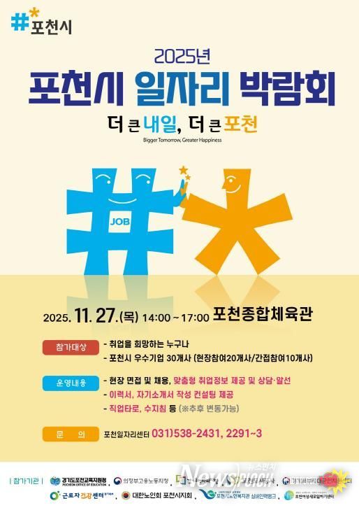 뉴스펀치 김길룡 기자 | 포천시는 오는 27일 포천종합체육관에서 지역의 구인난 해소와 구직자의 취업 기회 확대를 위한 ‘2025년 포천시 일자리 박람회’를 개최한다.