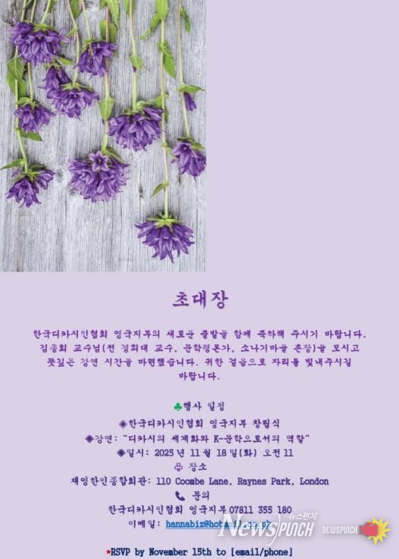 이번의 영국지부 창립식에서는 ‘디카시의 세계화와 K-문학으로서의 역할’을 주제로 강연이 있게 된다. 이 행사를 통해 한국에서 시작된 디카시가 영국 현지와 유럽으로 본격적으로 확산되는 뜻깊은 계기가 될 전망이다.