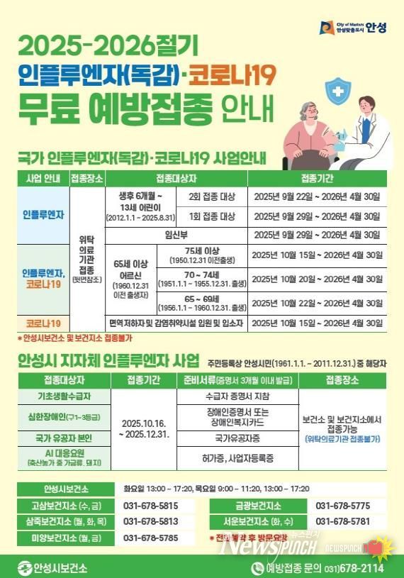 안성시는 “독감은 코로나19와 마찬가지로 호흡기 감염병으로, 동시 유행 시 의료 부담이 커질 수 있다”며 “예방접종이 가장 효과적인 예방법”이라고 강조했다.