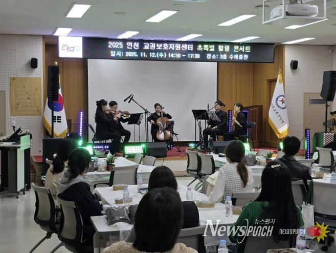 뉴스펀치 김길룡 기자 | 경기도연천교육지원청 교권보호지원센터는 2025년 11월 12일 연천교육지원청 3층 수레울관에서 교원의 정서 회복과 마음 치유를 위한 '초록빛 힐링 콘서트'를 진행했다.