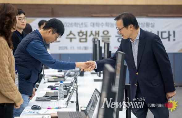 한편 임 교육감은 상황실 방문 전, 도내 한 수능 시험장교를 찾아가 교문 앞에서 수험생들을 응원했다.