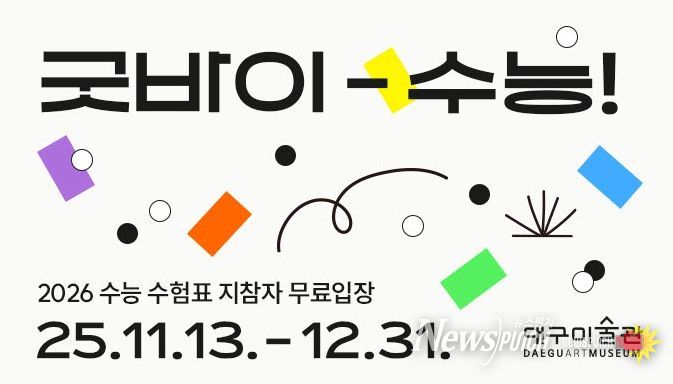뉴스펀치 조평훈 기자 | (재)대구문화예술진흥원 대구미술관은 2026학년도 대학수학능력시험을 마친 수험생을 대상으로 11월 13일부터 12월 31일까지 무료입장 행사를 실시한다.