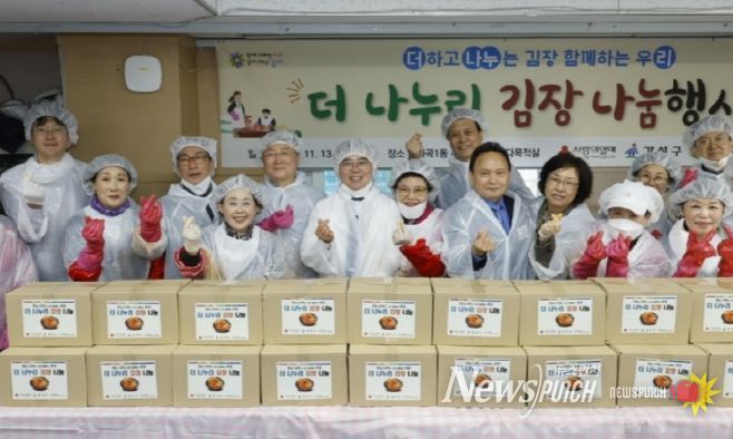 뉴스펀치 김완규 기자 | 진교훈 서울 강서구청장이 13일 오전 화곡1동주민센터에서 열린 ‘김장 나눔행사’에 참석해 어려운 이웃에 전달할 김장김치를 담갔다.