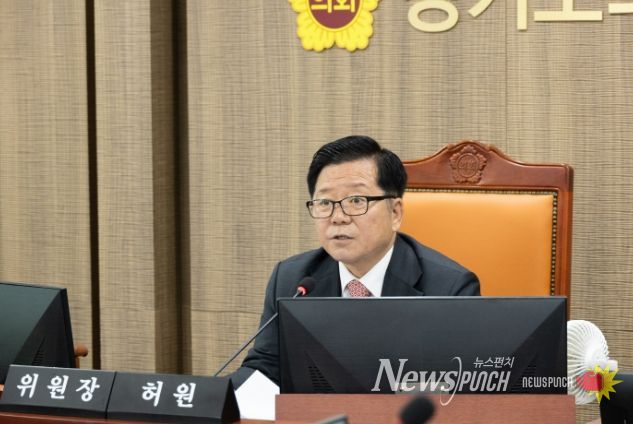 뉴스펀치 김길룡 기자 | 경기도의회 건설교통위원회 허원 위원장(국민의힘·이천2)은 12일 열린 2025년 경기도 교통국 행정사무감사에서 김동연 지사가 민생 현장을 순회하며 운영 중인 민생경제 현장투어 ‘달달버스’가 내연기관 차량으로 운행되고 있는 사실을 지적했다.